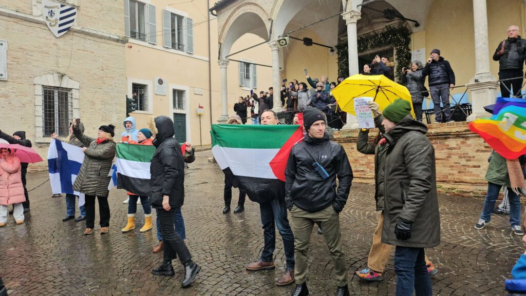 La fiamma ha anche questo compito mentre percorre le Marche puntando verso nord: riscaldare i cuori e veicolare messaggi di pace. Anche se c'è chi la contesta, come il gruppetto in piazza a Fermo che inneggiava alla Palestina e criticava la partecipazione di Israele.