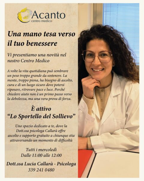 Al Centro Medico Acanto nasce “Lo Sportello del Sollievo”: un servizio gratuito di ascolto e supporto per la comunità