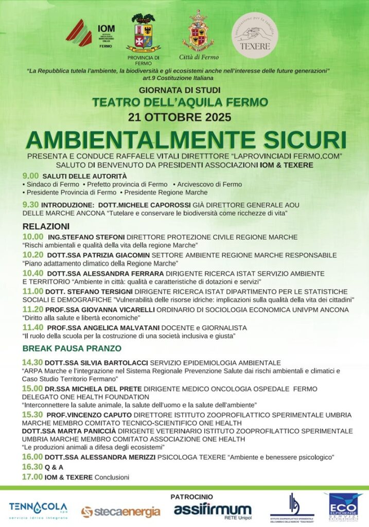 FERMO – Una giornata per parlare di ambiente a 360 gradi. Una giornata al Teatro dell’Aquila con la mattina che vedrà ospiti anche gli alunni delle scuole superiori, protagoniste di un corposo progetto pensato dallo Iom guidato da Licio Livini.