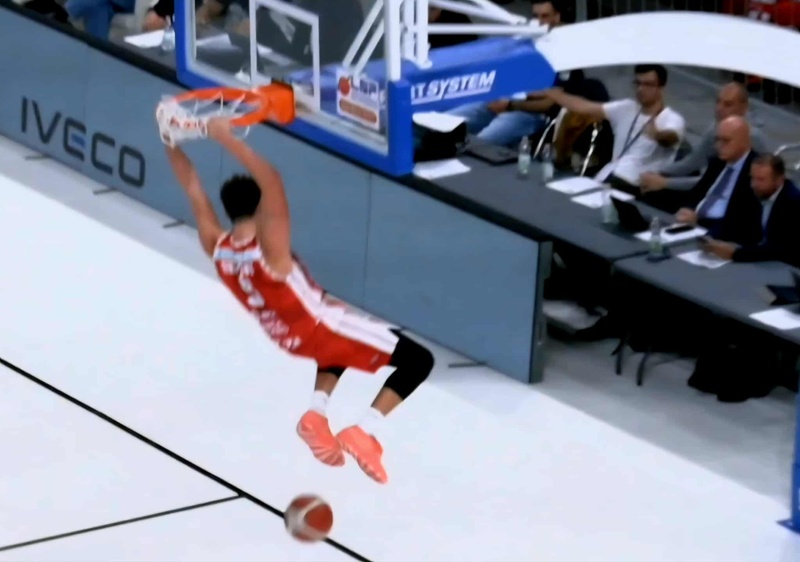 Ancora una volta, i mattoncini hanno padroni diversi. Perché non si può dimenticare il rimbalzo in attacco con canestro a seguire di Maretto per il 75-85 che taglia definitivamente le gambe ai lombardi con cinque minuti ancora da giocare. Si può aggiungere anche la successiva palla rubata con schiacciata in contropiede di Bertini (foto).