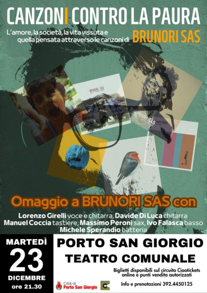 I biglietti sono disponibili sul circuito Ciaotickets, sia online all’indirizzo https://www.ciaotickets.com/it/biglietti/canzoni-contro-la-paura-omaggio-brunori-sas sia presso i punti vendita autorizzati. La biglietteria del Teatro Comunale sarà inoltre aperta il giorno dell’evento a partire dalle ore 20.00. Per info e prenotazioni è possibile contattare il numero 392.4450125.