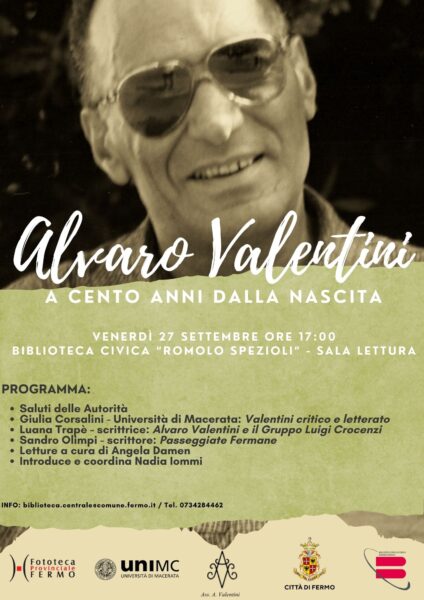 Per ricordare la sua figura, domani alle 17, la biblioteca “Romolo Spezioli”, su impulso dell’Associazione “Alvaro Valentini”, presieduta da Nadia Iommi, che persegue la conoscenza e la diffusione della sua opera, con il patrocinio del Comune di Fermo, la collaborazione dell’Università di Macerata e della Fototeca Provinciale, ospita un incontro.