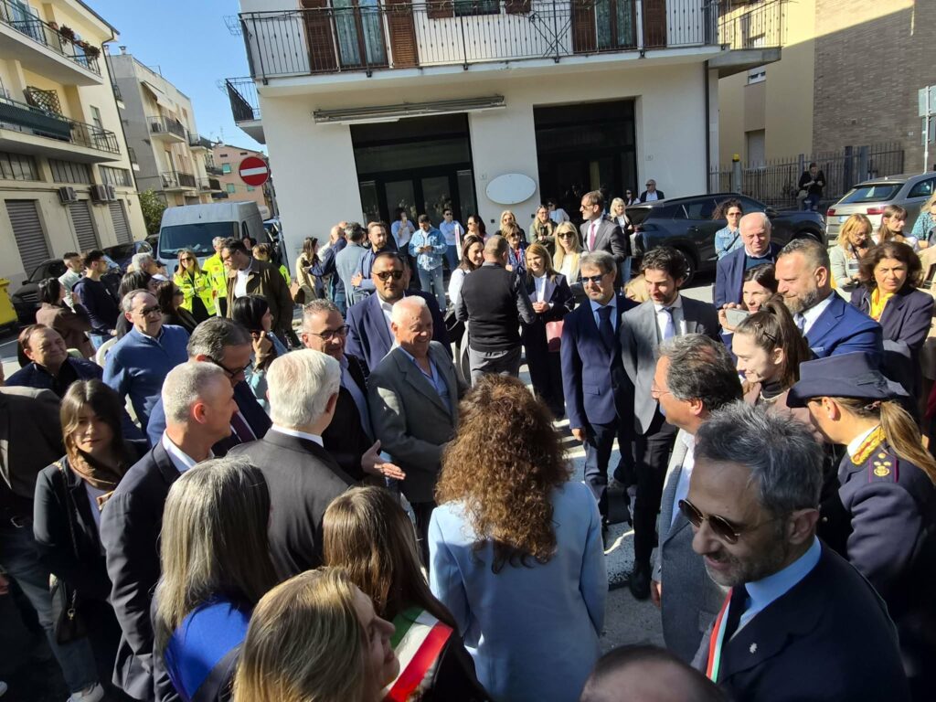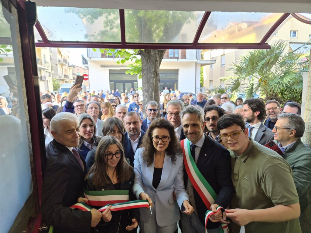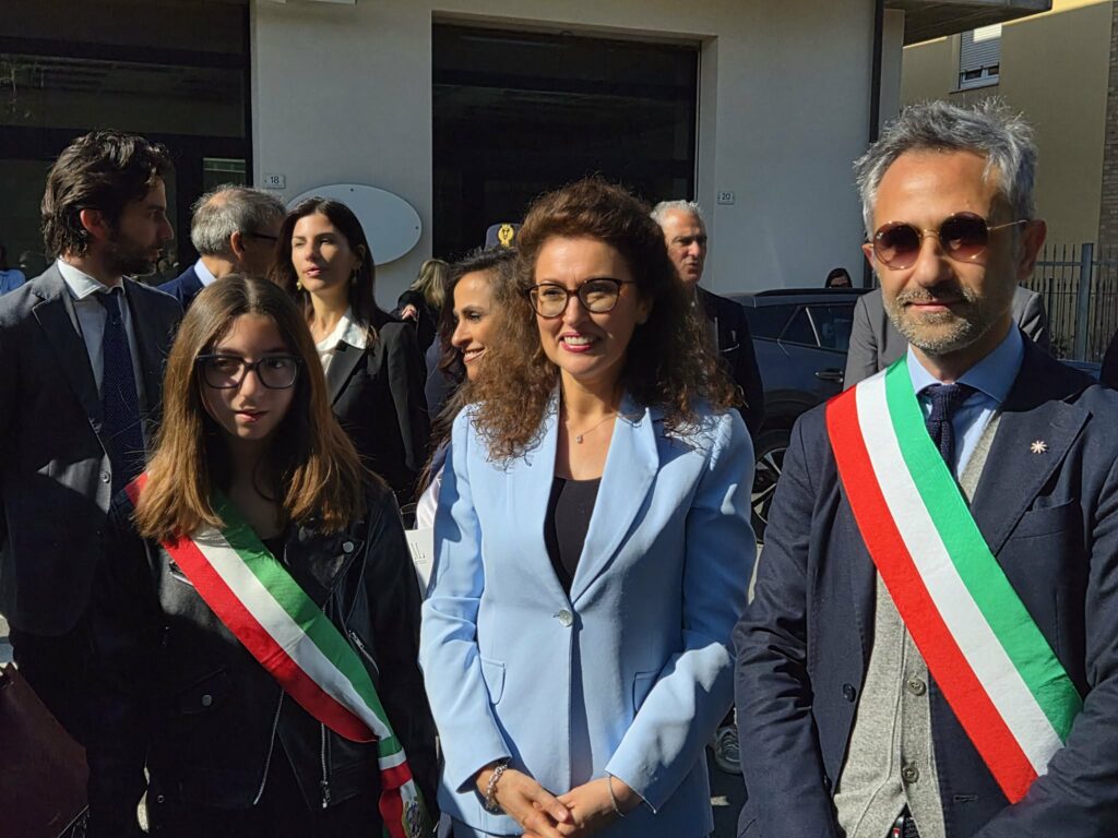 È il momento del nastro: a tagliarlo c’è anche l’europarlamentare Ciccioli. Arriva la senatrice Leonardi, ci sono i consiglieri regionali Putzu e Sebastiani. “Ma soprattutto – la chiosa della viceministra, cresciuta a Fermo – ci siete voi giovani. Ricordatevelo: questo è per voi. Da qui dobbiamo aiutarvi a far scomparire la paura del futuro che troppe volte ci segnalate”.