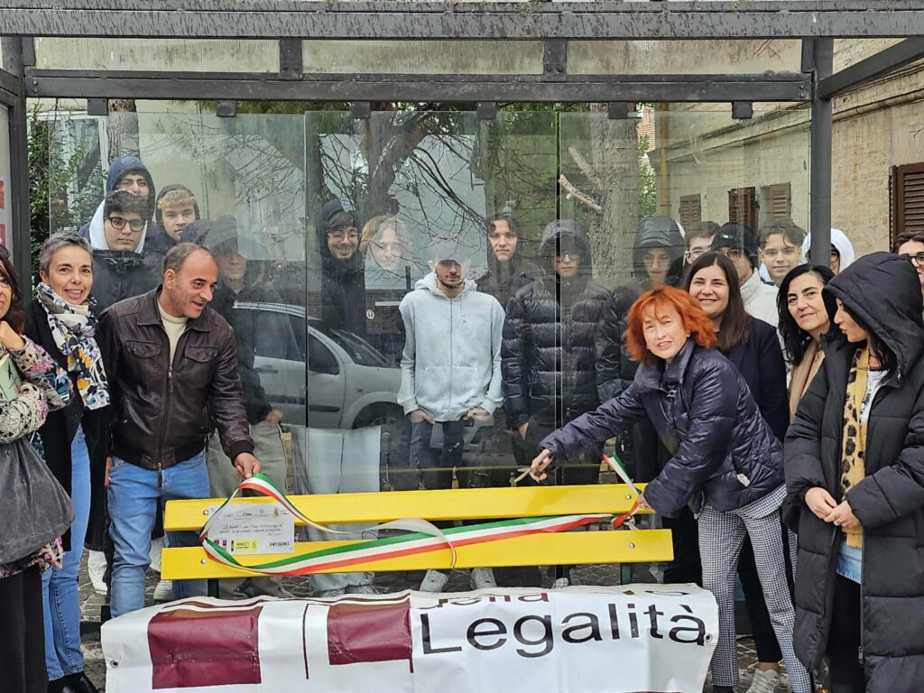 FERMO - Il giallo brilla davanti al carcere di fermo, sotto la pensilina dove ci si siede in attesa dell'autobus. È la panchina dei diritti umani, voluta dal Tavolo della Legalità della provincia di Fermo. "La panchina di fronte al carcere non è più gesto retorico ma assume un significato profondo. Di presidio morale e culturale" sottolinea l'assessora Micol Lanzidei.