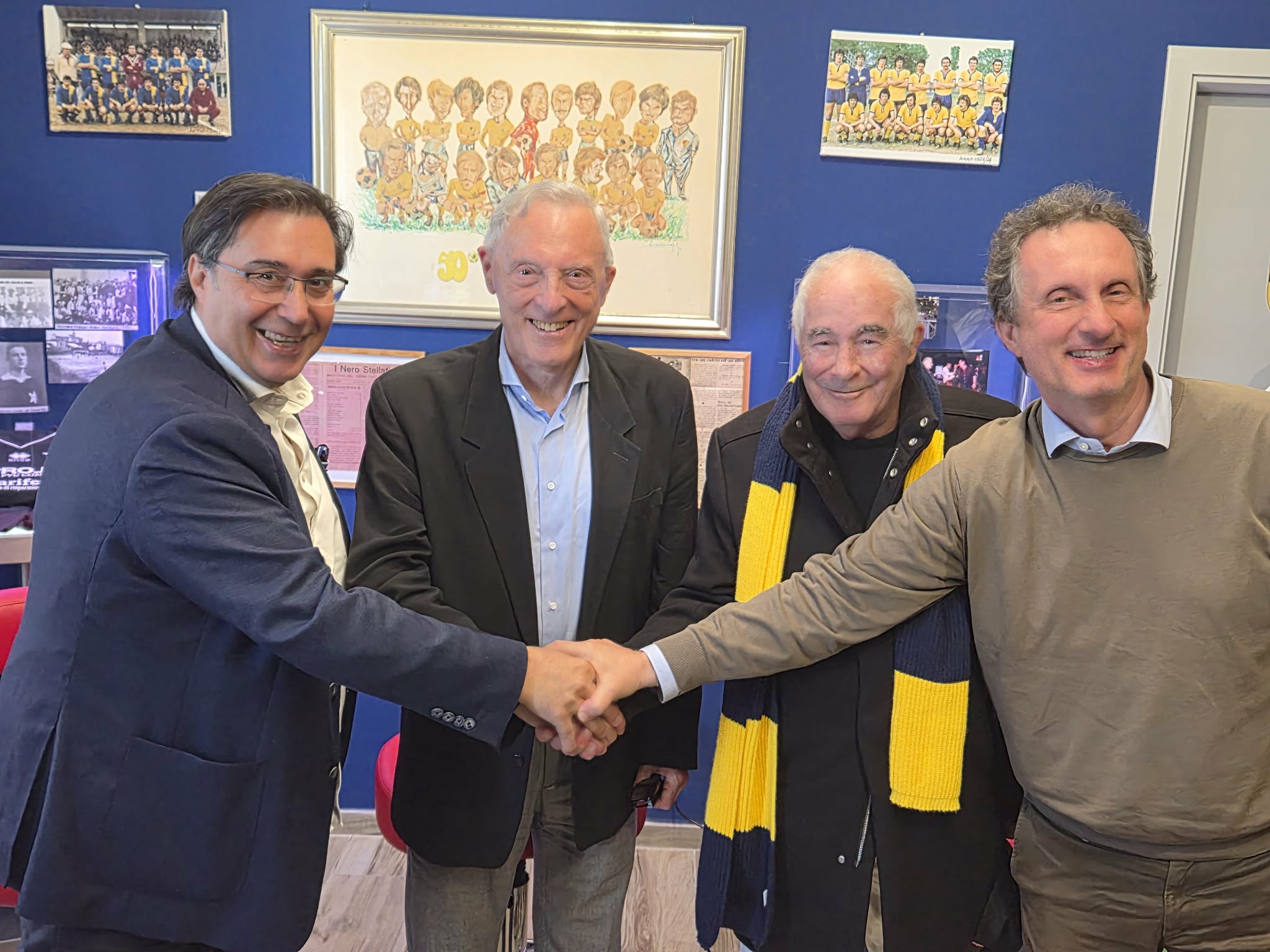FERMO – Una giornata destinata a segnare un passaggio storico per la Fermana Football Club. Dopo nove anni di presidenza, la famiglia Simoni ha ceduto la quota di maggioranza della società al Consorzio Free Group di Roma, guidato da Sergio Romoli e Rodolfo Guarini. Umberto Simoni diventa presidente onorario, mentre Sergio Romoli assume la guida del club.