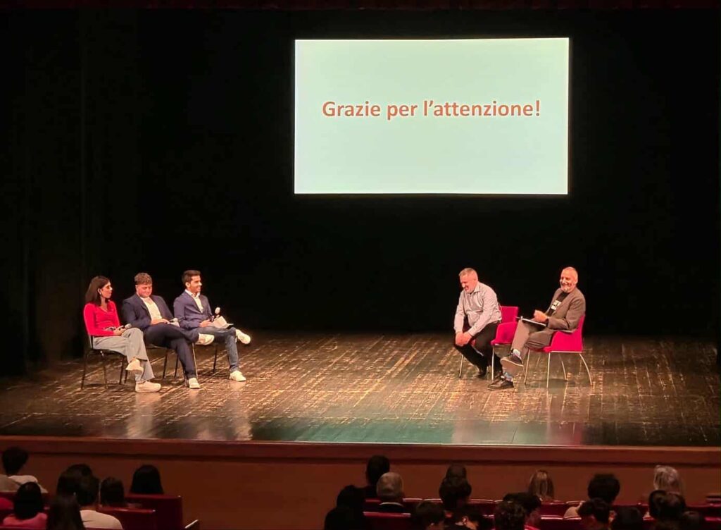 A seguire, un vivace talk con i giovani della Consulta studentesca, Federico, Marius e Francesca, condotto dal giornalista Raffaele Vitali, che ha saputo stimolare curiosità e confronto. Tante le domande per Vagnoni: dalla sua passione per la fisica alla situazione della ricerca in Italia, dal futuro dell’energia nucleare, “al Cern non si al ruolo delle donne nelle discipline scientifiche. Applausi convinti hanno accompagnato le risposte dello scienziato, abituato a dialogare con i ragazzi e a trasmettere entusiasmo per la conoscenza.
