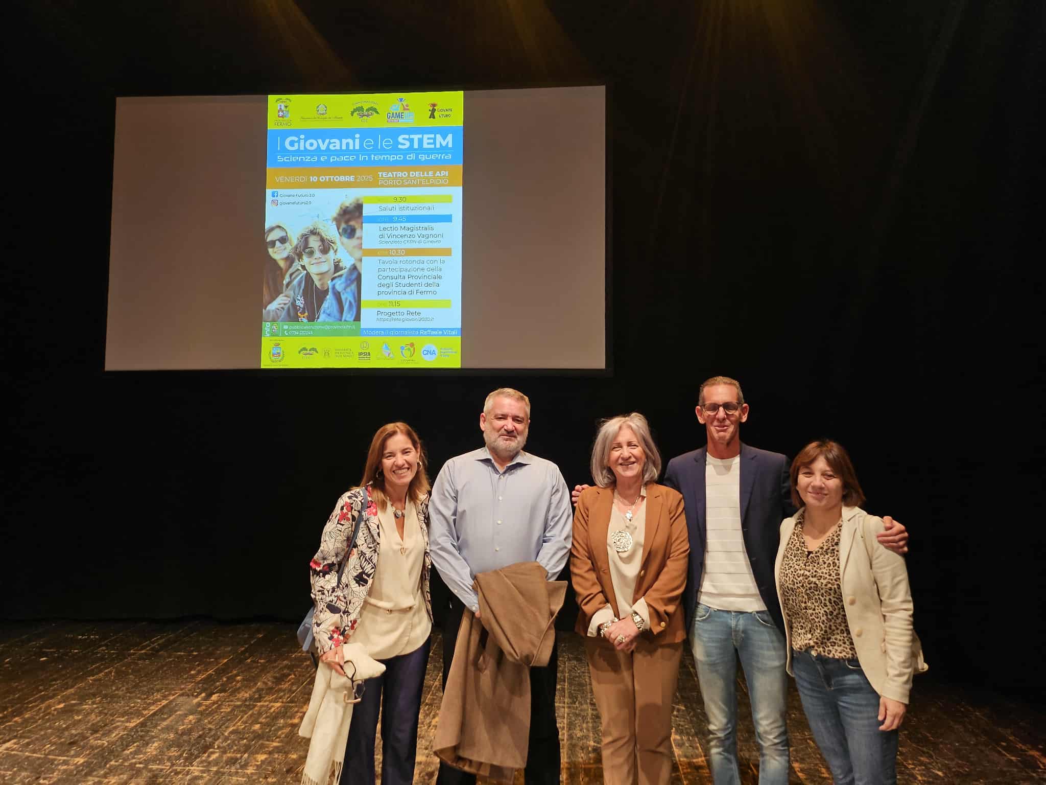 L’incontro, ospitato al Teatro delle Api di Porto Sant’Elpidio, ha avuto come protagonista Vincenzo Vagnoni, scienziato del Cern di Ginevra e originario di San Benedetto del Tronto, che ha tenuto una lectio magistralis dal titolo “Scienza e pace, in tempo di guerra”.