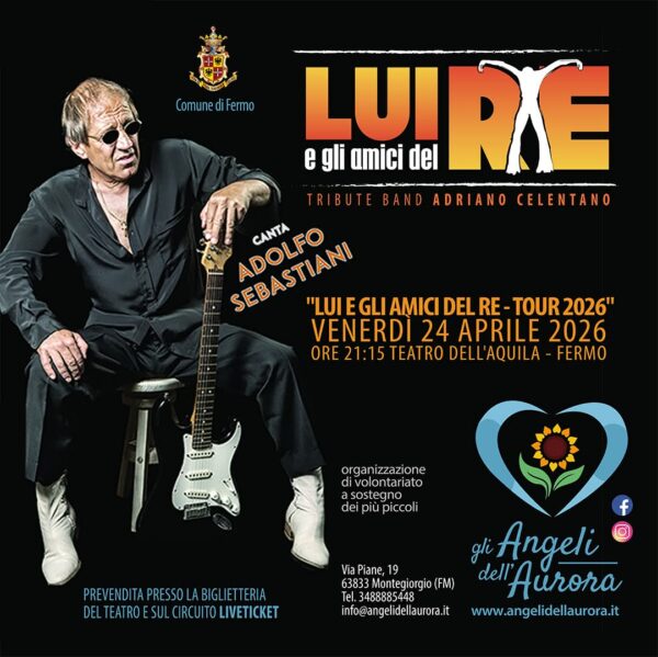 Protagonista della serata sarà “Lui e gli amici del Re”, un tributo spettacolare dedicato a Adriano Celentano, figura iconica e intramontabile della musica italiana. Nato nel febbraio del 2002 dalla grande passione per l’eclettica e straordinaria musica del “Molleggiato”, il progetto si è affermato negli anni come uno dei tributi più apprezzati a livello nazionale e internazionale. La naturale somiglianza estetica e vocale del leader Adolfo Sebastiani, unita alla professionalità dell’intero staff, ha permesso alla tribute band marchigiana di costruire uno spettacolo unico nel suo genere.