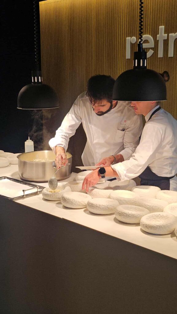 Abou Zaki, come un Bolle dei fornelli, si muove tra i piatti, l’incontro ai tavoli con ogni commensale che vuole scambiare una battuta prima dell’inevitabile foto ricordo, e il microfono, che lo chef usa come un cucchiaio, in maniera naturale. Si commuove ogni tanto mentre parla, capita quando presenta la madre, che si alza di corsa e lo va ad abbracciare, capita quando racconta le sue Marche, capita perché la cucina è sentimento.
