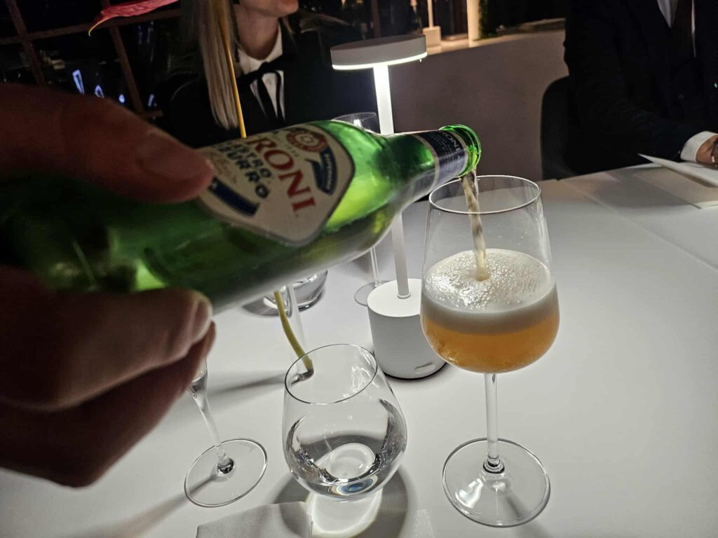 La cena è come un perfetto ballo, ogni passo segue l’altro senza inciampi. Dalla Amuse Bouche al risotto adriatico, che illumina i volti dei commensali per il suo sapore d’olio di oliva tenera ascolana, per non parlare del tortellino alla crema di parmigiano che fa calare un irreale silenzio in cui l’unico rumore è quello del cucchiaio che sfrega sugli originali piatti in piena.