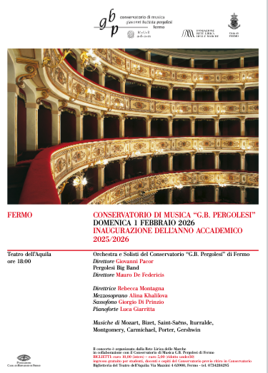 FERMO - Domenica 1 febbraio, ore 18:00, nella raffinata cornice del Teatro dell’Aquila di Fermo, il Conservatorio “G. B. Pergolesi” presenta il Concerto di inaugurazione dell’anno accademico 2025/2026.