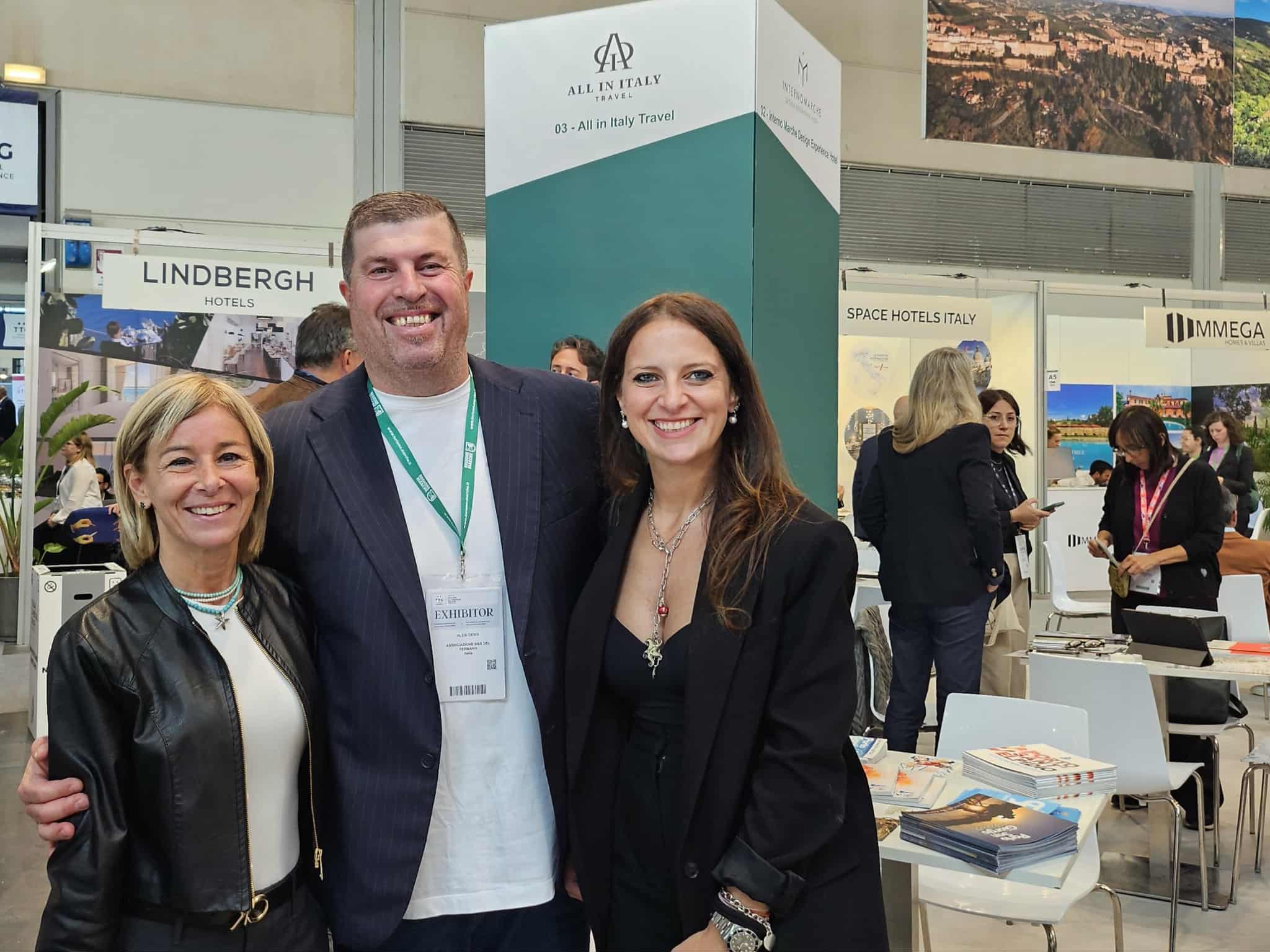 RIMINI/FERMO – In uno dei corner del maxi stand della regione marcato Let's Marche, spicca l’associazione B&B del Fermano, guidata dal presidente Devis Alesi. “Siamo un unicum, siamo i più grandi delle Marche con 72 strutture associate e 40 aziende partner” racconta Alesi. Al suo fianco l’assessora al turismo di Porto Sant’Elpidio, Elisa Torresi, città da cui tutto è partito, e la collega Maria Laura Bracalente, deleghe al commercio e ambiente.