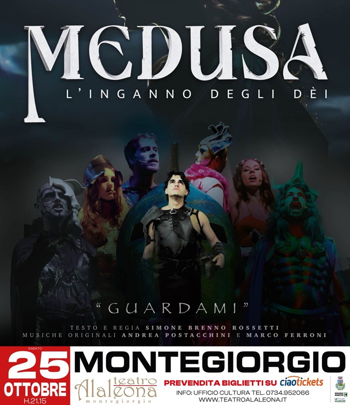 Protagonista è il musical Medusa – L’inganno degli dei. Una produzione made in Marche, che ha nella Compagnia del Fiore il perno, che ha già entusiasmato il Teatro dell’Aquila e che ora si mette alla prova del palco dell’Alaleona.