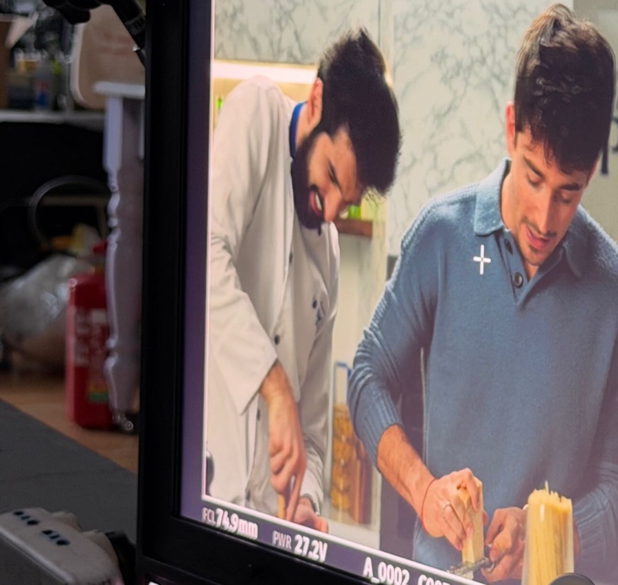 Ad attenderlo, però, non c’erano solo telecamere e truccatrici, ma la star del servizio pubblicitario: Charles Leclerc. Il pilota di Formula 1, volto della Ferrari nel mondo, ha cucinato insieme con Abou Zaki.