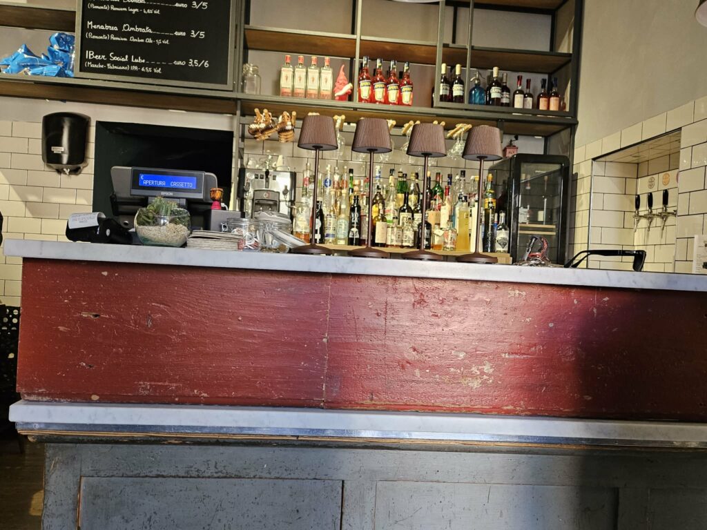 “Non è solo un bar o solo un luogo di ristorazione: è uno spazio che racconta storie. A partire dall’arredo, interamente recuperato” racconta con soddisfazione muovendosi dentro il locale. Il bancone principale proviene dalla storica Ferramenta Agostini; un altro bancone dalla vecchia ferramenta Fogliani. Due pezzi unici che da soli colpiscono gli occhi. Ma non basta. “Il legno del banco più grande è addirittura quello originale dei palchetti del Teatro dell’Aquila, di fine Ottocento, recuperato durante i restauri degli anni ’90 e rimasto per decenni in un magazzino” prosegue.