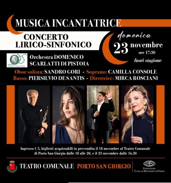 PORTO SAN GIORGIO - Domenica 23 novembre il teatro comunale di Porto San Giorgio ospita il concerto lirico sinfonico dell’orchestra Domenico Scarlatti di Pistoia, in collaborazione con la Società Operaia (ore 17,30).