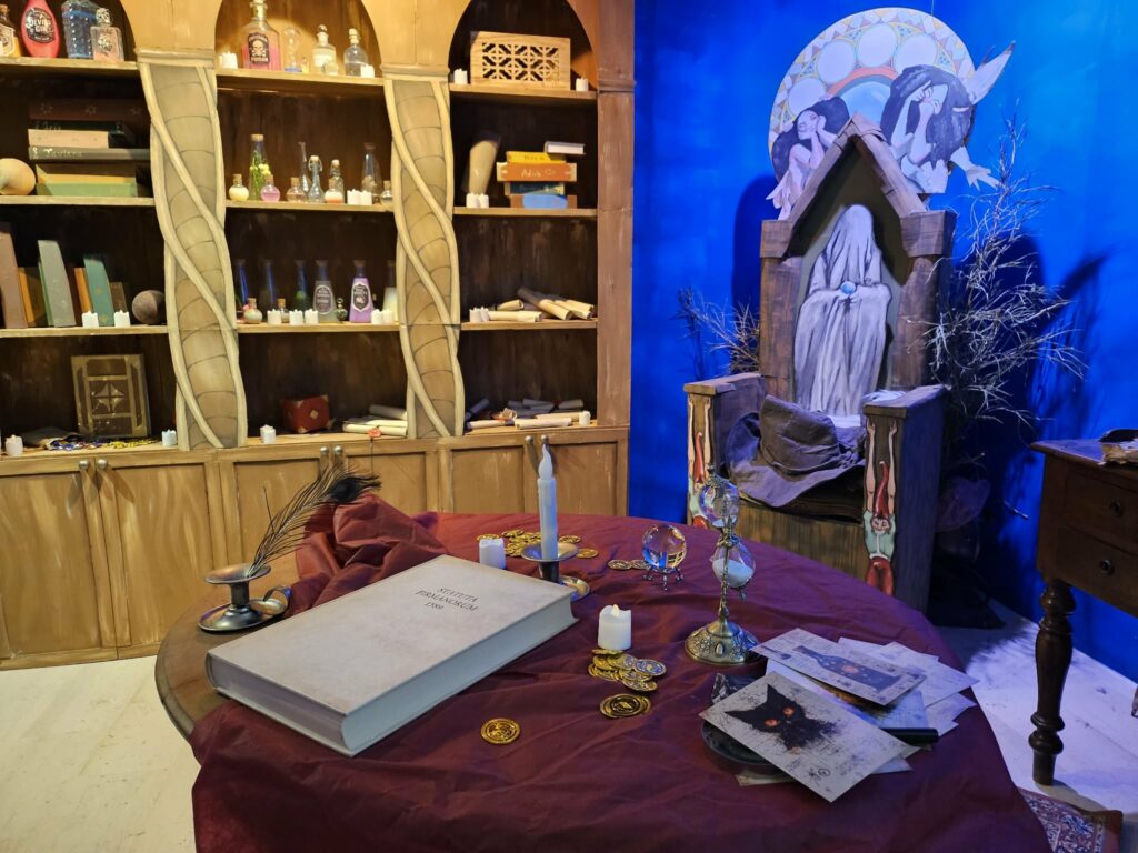 Ma cosa accade dietro il portone, che si apre per l’iniziativa che dopo 20 minuti di racconto diventa esperienza immersiva e pratica. “Merlino ha perso la memoria e tre carte del suo magico mazzo, chi entra e partecipa deve aiutare il mago a recuperare la memoria e quindi la magia” spiega Javiera Morgana. Per farlo, però bisogna attraversare stanze, muoversi tra porte incantate porte e stanze della luce, ridendo coni burattini e provando pozioni.