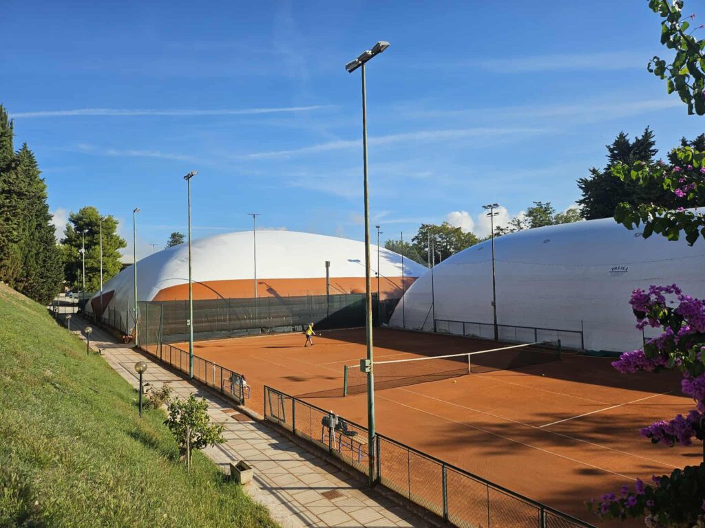 Posizione strategica, la struttura circondata da alberi, con la sua tribuna vintage incastonata nella collina, non è però facilmente migliorabile. O soprattutto ampliabile. Le idee non mancano, dai due campi da padel al posto del campo in sabbia: “Ma non dei campi qualunque, devono essere climatizzati, quindi un investimento maggiore in modo da renderli operativi tutto l’anno nel massimo comfort” spiega il gestore.