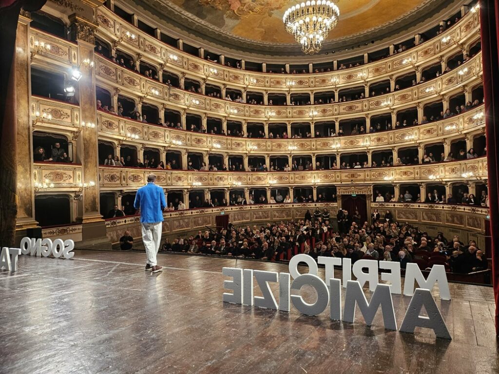 FERMO – È salito sul palco mentre il teatro era ancora vuoto. Ha iniziato così a conoscere ogni metro dello spazio su cui si sarebbe mosso durante la sua lectio, che è diventa dopo pochi minuti interazione vera con il pubblico. Il pallavolista Matteo Piano è stato l’ospite che ha saputo conquistare i cuori di grandi e piccoli, partendo dai 113 studenti e studentesse che hanno riempito il teatro, tutti in trepidante attesa che il loro nome venisse chiamato per salire poi sullo stesso palco di Matteo Piano per ricevere la Pagella d’Oro.