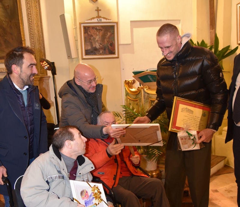 La giornata ha riservato anche un dolce incontro per il campione, che ha avuto modo di salutare i ragazzi dell'istituto Mancinelli di Montelparo, la struttura sanitaria residenziale riabilitativa per disabili, e che è culminato con la consegna di un regalo speciale, segno tangibile dell'affetto e dell'ammirazione che la comunità nutre per lui. Per Achille due quadri che raffigurano un giocore di pallacanestro.