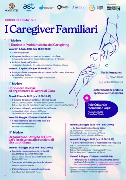 PORTO SANT'ELPIDIO - È iniziato il 10 aprile scorso, al polo culturale Gigli, il corso informativo sui caregiver familiari, un percorso pensato per chi ogni giorno si prende cura di una persona fragile, con l’obiettivo di offrire strumenti concreti, informazioni utili e momenti di confronto. Il corso è stato promosso dall’Ambito territoriale sociale XX – Centro per la famiglia e AST Fermo, con il contributo della Regione Marche e in collaborazione con Nuova Ricerca Agenzia Res, COOSS Cooperativa sociale e AssCoop. Si tratta di un ciclo di 8 incontri a cadenza settimanale in cui si affrontano le principali dimensioni del lavoro di cura: dagli aspetti relazionali ed emotivi alla gestione dello stress e del carico assistenziale, fino all’orientamento tra i servizi sociali e sanitari e agli aspetti normativi e amministrativi. Articolato in moduli tematici, il corso prevede il contributo di professionisti del settore sociale, sanitario e legale, con un’attenzione specifica alla promozione del benessere del caregiver, alla prevenzione del burn-out e al rafforzamento della rete territoriale di supporto, con l’intenzione di dare delle “pillole informative” dal taglio sia teorico che pratico. L’incontro di apertura si è aperto con i saluti dell’assessore ai servizi sociali Marco Traini e del direttore socio sanitario Ast Fermo, Alberto Franca. Successivamente sono stati trattati temi come la definizione, il ruolo e i compiti del caregiver familiare a cura dell’assistente sociale del comune di Porto Sant’Elpidio, dott.ssa Ludovica Quattrini per poi proseguire con la tutela legale dell’anziano a cura della dott.ssa Lara Testatonda, avvocato, amministratore di sostegno e tutore. Secondo appuntamento venerdì 17 aprile, sarà trattato il tema “Impegno di cura: caregiver a tempo pieno, rischio stress e burn-out La malattia e il lutto,” argomento curato dalla dott.ssa Maria Laura Pozzo, psicologa e psicoterapeuta. Il ciclo di incontri si chiuderà il 5 giugno con il tema Prendersi cura insieme: associazionismo, diritti e gestione delle fragilità in collaborazione con l'Assemblea delle associazioni che operano in ambito sanitario Ast Fermo: AFMA, AIMFT e CIVES. La partecipazione è gratuita e si invita tutta la cittadinanza a partecipare come momento di confronto e informazione.