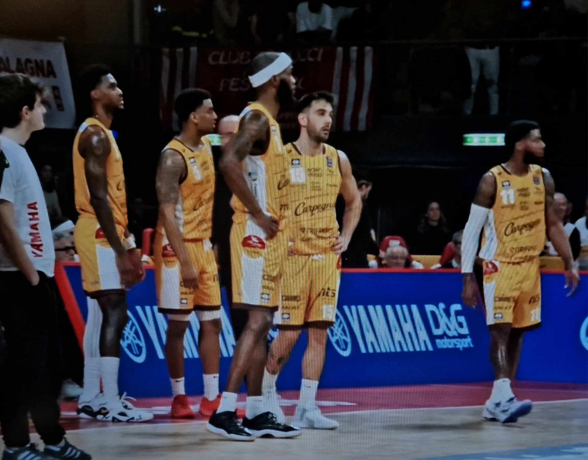 È una Carpegna Prosciutto che gioca di squadra che si cerca in campo, che costruisce buoni tiri, ma soprattutto sporca palloni in difesa e corre. Non c’è Petrucelli che tenga, la concentrazione in campo è alta. E quando Totè commette fallo su Burnell mentre tira da tre, tutti battono le mani, perché non è stato un fallo da lentezza, ma da aggressività al termine di un’ottima zione difensiva. E il fato lo premia, visto che l’americano di Brescia fa uno su tre.