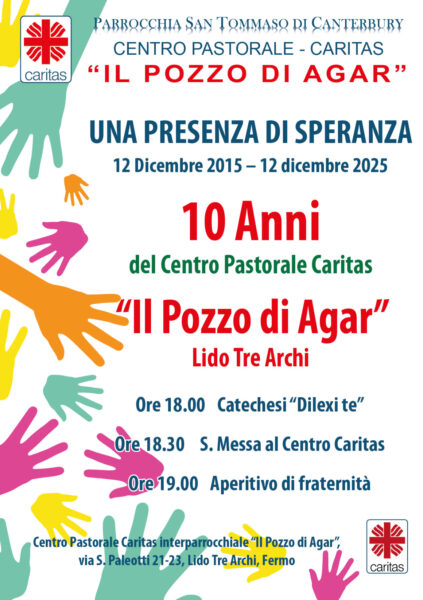 FERMO - Sono passati 10 anni dall'attivazione del Centro Pastorale Caritas Interparrocchiale “Il Pozzo di Agar” sorto all'interno del quartiere Lido Tre Archi - San Tommaso, frutto concreto del discernimento operato dalla Comunità parrocchiale di San Tommaso che, a partire dall’Esortazione Evangelii Gaudium di Papa Francesco, ha riflettuto su come poter essere “Chiesa in uscita” nelle periferie urbane ed esistenziali del proprio territorio.