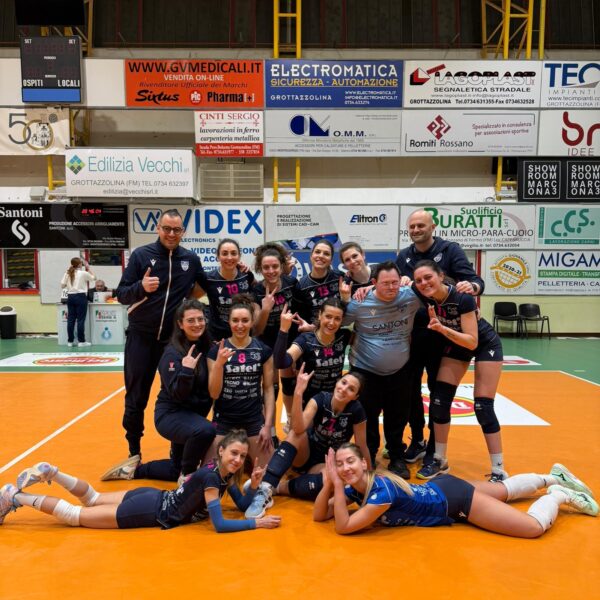 GROTTAZZOLINA – Doppio successo pesantissimo nel fine settimana nel panorama femminile per le rispettive competizioni. Partiamo dalla C Femminile dove la Satel Grotta 50 si impone in rimonta 3-2 davanti al pubblico amico contro il Volley Urbino. Ormai per le ragazze di Paolo Tassi giocare meno di cinque set e meno di tre ore è la normalità. Dopo la epica battaglia di Vallefoglia nel match infrasettimanale pochi giorni prima, contro Urbino sono servite oltre 2 ore e 30 per portare a casa due punti pesantissimi in uno scontro diretto chiave in ottica salvezza. Ed Urbino si è confermata squadra molto solida che può contare su alcuni elementi capaci di fare la differenza. La Satel Grotta ha messo in campo grande cuore ed attaccamento, senza mai mollare la presa anche sotto di sue set. Eppure le ragazze di casa, al PalaGrotta, erano partite contratte con le ospiti a spingere molto al servizio nella prima fase: è qui che si scava quel solco che la reazione locale non riesce a rintuzzare, con il primo parziale che scivola via in questo modo. Grande equilibrio invece nel secondo set giocato punto a punto dall'inizio alla fine. Il secondo invece scivolato punto punto fino al termine: un finale thrilling con le ragazze di casa che non concretizzano cinque set point mentre il killer instinct è tutto dalla parte di Urbino che non mostra il braccino e alla prima occasione utile si porta sullo 0-2 nel conte set. Ma proprio questo equilibrio da fiducia alle ragazze di casa che prendono le misure soprattutto alla bocca da fuoco principale in campo avverso e iniziano a prendere in mano il gioco. Il terzo e il quarto set sono conquistati esprimendo un'ottima pallavolo e offrendo un livello di gioco molto alto. In quinto parziale, ormai un classico per le ragazze, inizia con la Satel a spingere al meglio, con autorevolezza anche oltre il cambio campo. Poi un po' di stanchezza, anche per le recenti fatiche, permette ad Urbino di impattare e portare la gara ai vantaggi: Urbino ha un match point che viene annullato e alcune ottime azioni di muro-difesa portano al successo in casa Satel grazie al contrattacco vincente nell'azione finale. Una grandissima reazione contro una squadra molto solida e quadrata che ora è stata messa alle spalle di un punto.