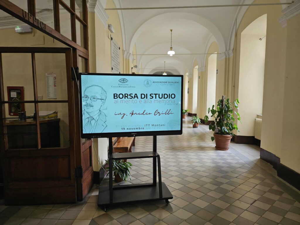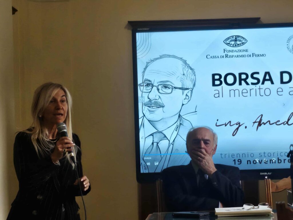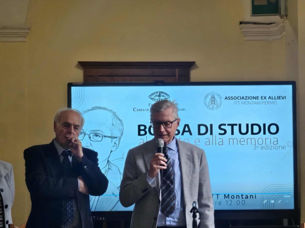 FERMO – “Lavoriamo quotidianamente per il futuro degli alunni. Li accogliamo 14enni e li accompagniamo passo passo non senza difficoltà verso il diploma di scuola superiore. Un diploma che, preso al Montani, è un valore aggiunto. Oggi uniamo al processo culturale quello formativo, aspetti che si coniugano con confronto e condivisione. Si raggiunge così l’eccellenza che merita la borsa di studio che porta il nome di Amedeo Grilli”. La dirigente dell’Iti Montani, Stefania Scatasta, accoglie alunni, famiglie, vertici della Carifermo e della Provincia nel cuore dell’istituto.