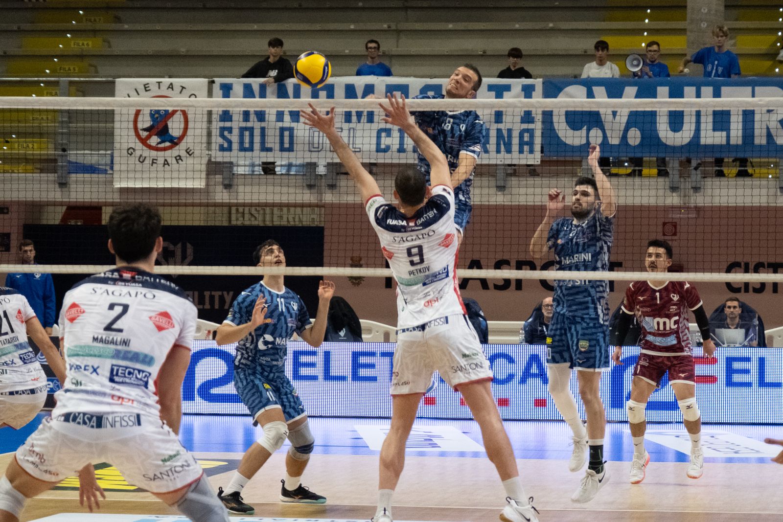 La risposta marchigiana non tarda: nel secondo set la Yuasa si ritrova, cresce a muro con Stankovic e trova continuità in attacco con l’opposto iraniano Amir Golzadeh, autore di una prova convincente da 21 punti. Finisce 22-25 e tutto da rifare.