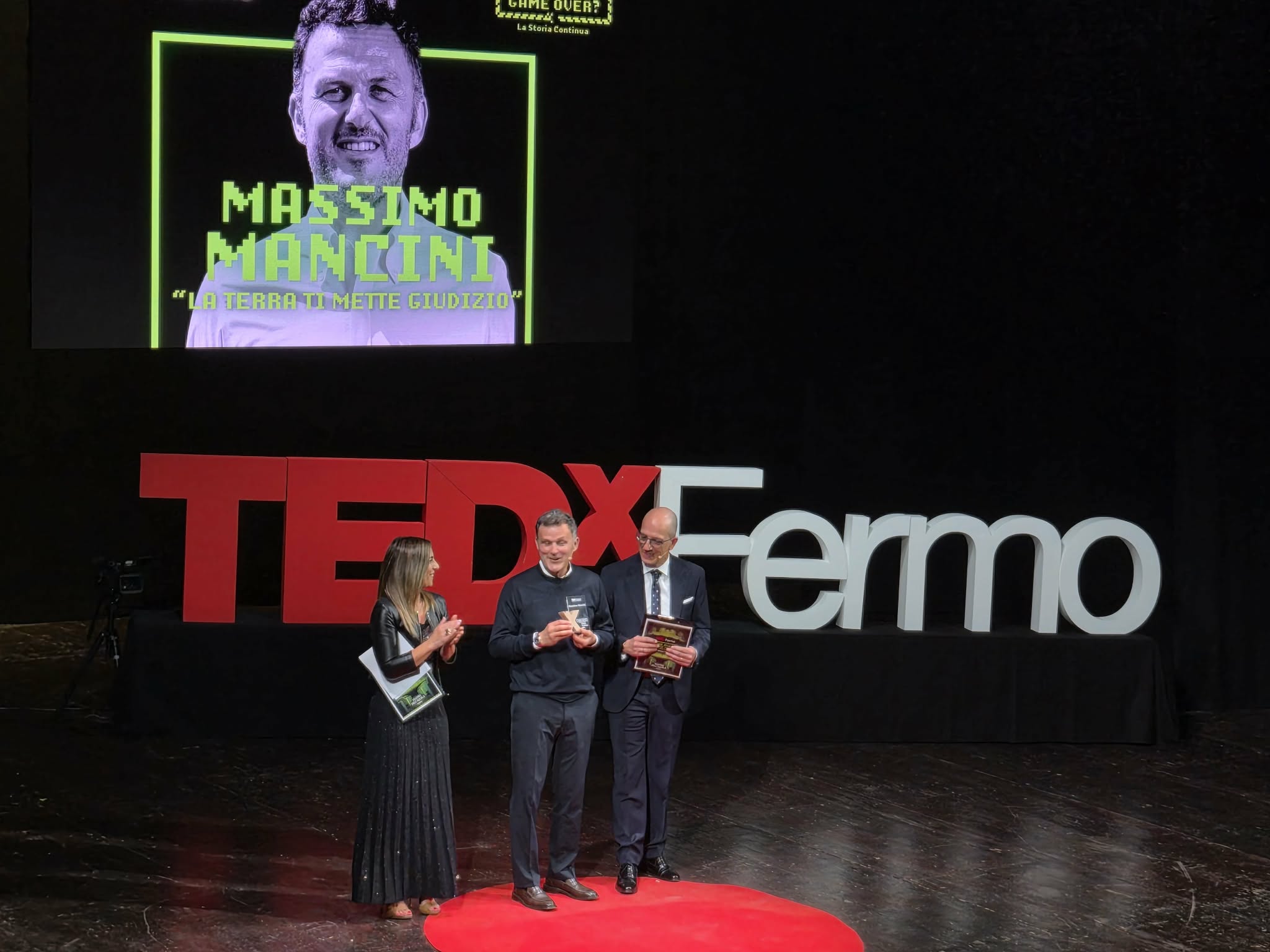 Non sono mancati i momenti difficili: dalla crisi del 2008 al Covid, ma Mancini non ha mai traballato. Centrale, nel suo racconto, il tema del tempo: «Oggi si tende a evitare le difficoltà, ma sono quelle che formano. In agricoltura si impara ad aspettare: la terra mette giudizio, diceva mio nonno. Non puoi forzare i tempi”. Il suo, alla fine, è un messaggio aperto: servono basi solide, visione di lungo periodo e coerenza nelle scelte quotidiane. È un game over pieno di speranza quello di Mancini, seguito poi da altri relatori, per tutti, la X di vetro come ricordo di 12 indimenticabili minuti.