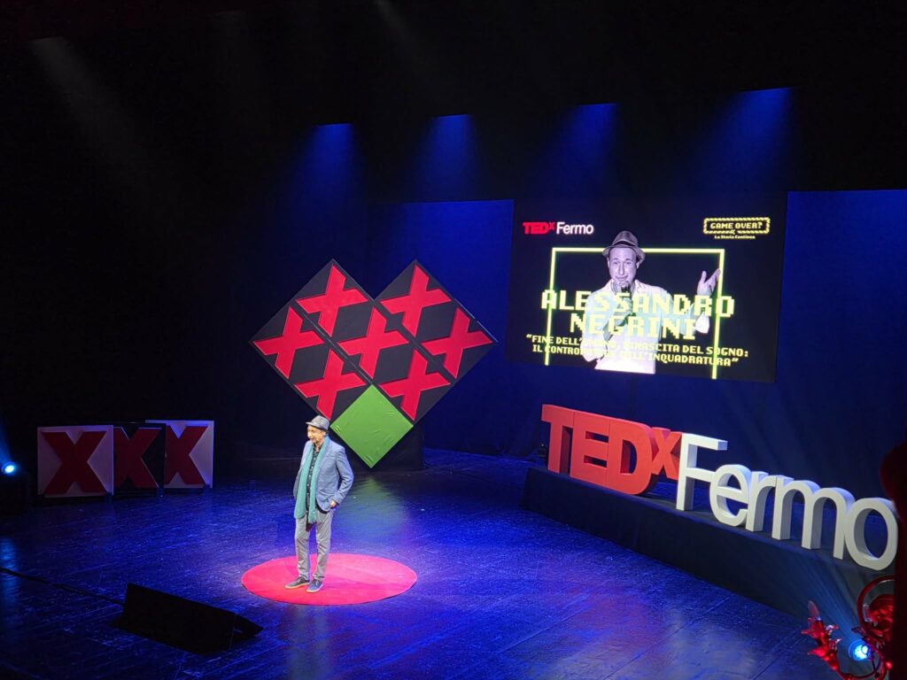 Sul palco si muovono in sintonia i conduttori Gianluca Marinangeli e Velika Papiri, che hanno tra uno speaker e l’altro raccontato il progetto che TEDxFermo sta portando avanti nelle scuole. Protagonista il Polo Urbani, con la referente Samuela Pallottini. Sul palco scorrevano le immagini di interviste e momenti condivisi con gli studenti, con un filo conduttore provocatorio: game over.