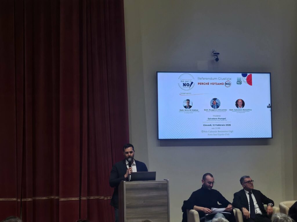 PORTO SANT’ELPIDIO – Il comitato del NO riempie il cineteatro Gigli, tante le persone rimaste in piedi. L’assenza all’ultimo minuto dell’ex magistrato De Magistris non frena l’entusiasmo di chi vuole capire e conoscere, in questo caso, le ragioni di chi si oppone alla riforma della giustizia del governo Meloni.
