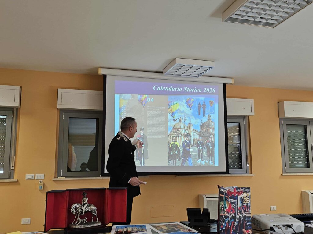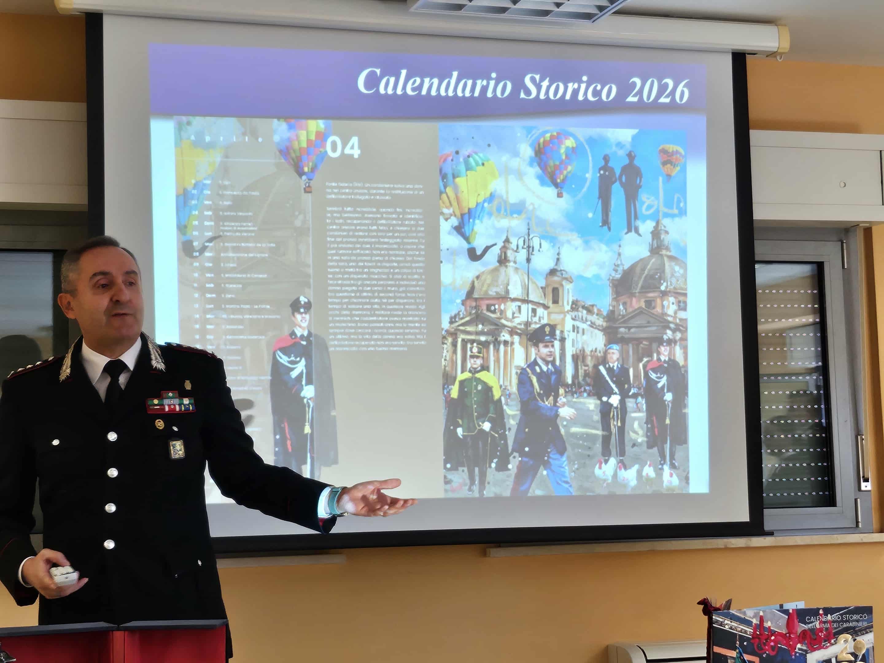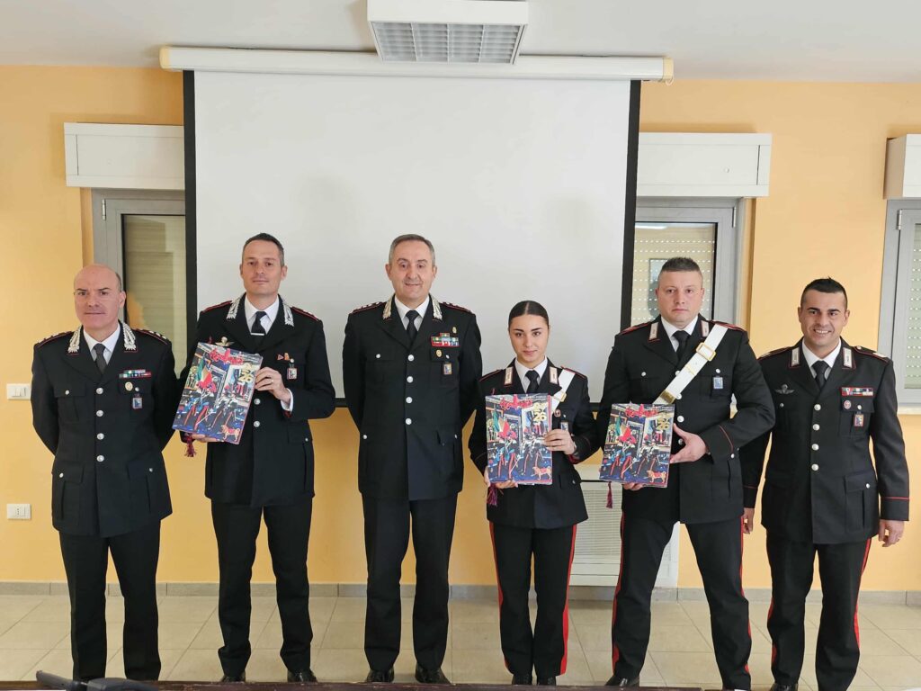La copertina è di Luigi Baleno, in arte Renè, pennello della pop art. “Nella modernità troviamo la tradizione. Ai colori vivaci si abbina l’arte tradizionale”. Il filo conduttore è la lettera di un giovane allievo carabiniere che scrive ai genitori ‘non vi stupite della lettera, ma è l’unico mezzo per poter dire quello che sento’. Parole che raccontano la scelta di uno studente che eccelleva negli studi con valori e che ha scelto di fare il carabiniere, con tutti i rischi che comporta questa scelta. ‘Per me è il mestiere che mi consente di stare vicino ai più deboli’ è il messaggio dell’allievo. “Quindi carabiniere come difesa dei fragili, come vicinanza davvero a tutti” riprende il comandante.