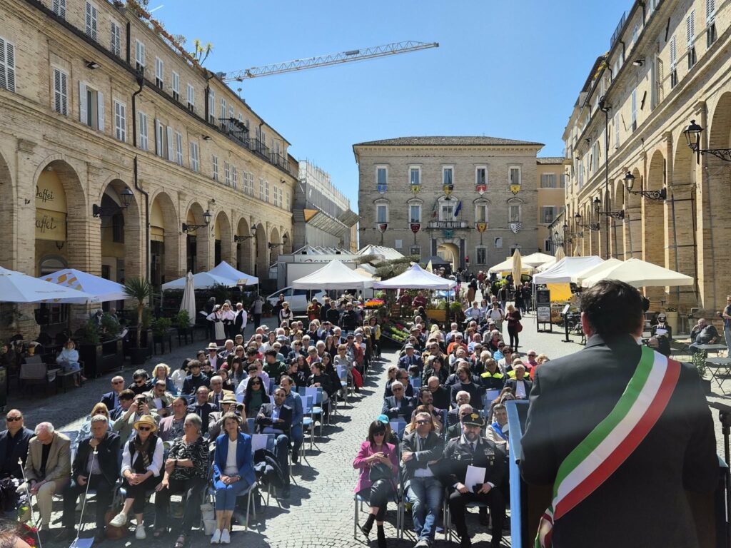 “Abbiamo scelto la piazza come luogo aperto, popolare, per una cerimonia che fosse davvero di tutti” ha spiegato il vice sindaco reggente Mauro Torresi, aprendo il suo intervento con un ringraziamento alle autorità presenti e alla cittadinanza.