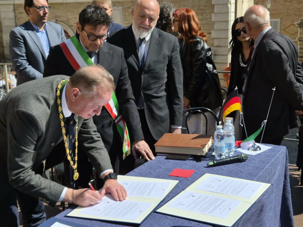 Nel suo discorso, Torresi ha sottolineato il valore profondo del gemellaggio, andando oltre la dimensione formale: “In un contesto internazionale segnato da divisioni e conflitti, il rapporto tra Fermo e Ansbach rappresenta la dimostrazione concreta di come dialogo e collaborazione possano essere strumenti per abbattere barriere e costruire opportunità”.