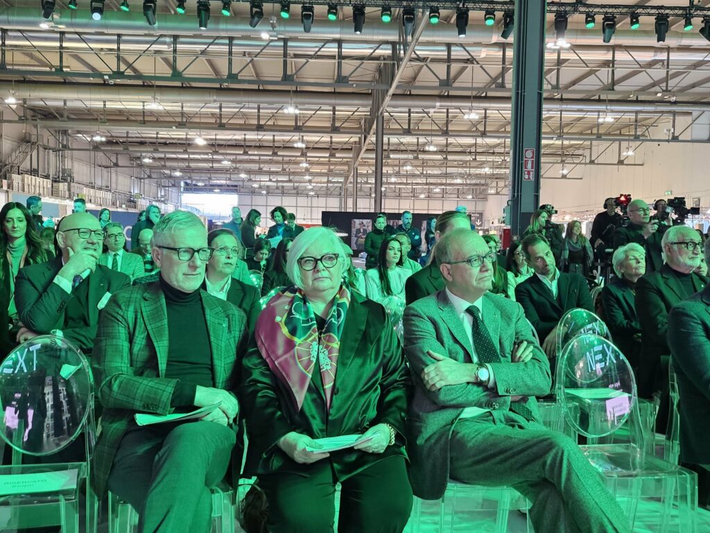 Al fianco della numero uno di Assocalzaturifici c’è la presidente Claudia Sequi che dà il via per dare il via al 129esimo Mipel. “Ci siamo rinnovati e abbiamo cambiato padiglione, per la prima volta al 5. Ma abbiamola posizione frontale, quindi un luogo importante. Abbiamo ridisegnato il layout, concepito come un contesto urbano grazie a Lombardini 22. E abbiamo concepito la fiera come un percorso immersivo, coinvolgente e fluido. Vogliamo che i buyer possano ammirare al meglio le collezioni”.