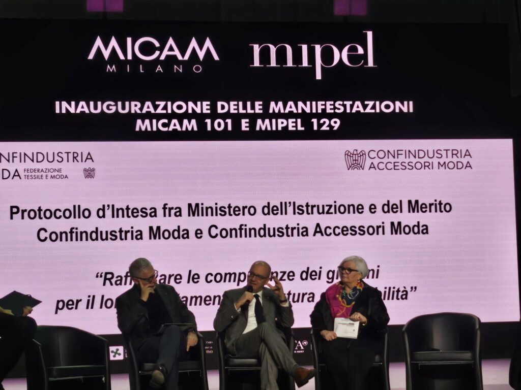 Sono tre i nomi in calce al protocollo: Luca Sburlati, Confindustria Moda, Giovanna Ceolini, Confindustria Accessori Moda, e il ministro Giuseppe Valditara. Sburlati partite dai numeri per far capire il peso del settore. “La moda italiana vale 90 miliardi ed è la seconda industria per export del Paese con 70 miliardi. Oggi diamo lavoro direttamente a mezzo milione di persone, un altro mezzo nel retail. Vogliamo che resti strategico per l’economia? Misure come quella di oggi sono strategiche. L’età media nelle industrie è avanzata, serve un veloce cambio nella strategia educative. Ci devono lavorare i territori e la politica, ma anche Confindustria farà la sua parte”.